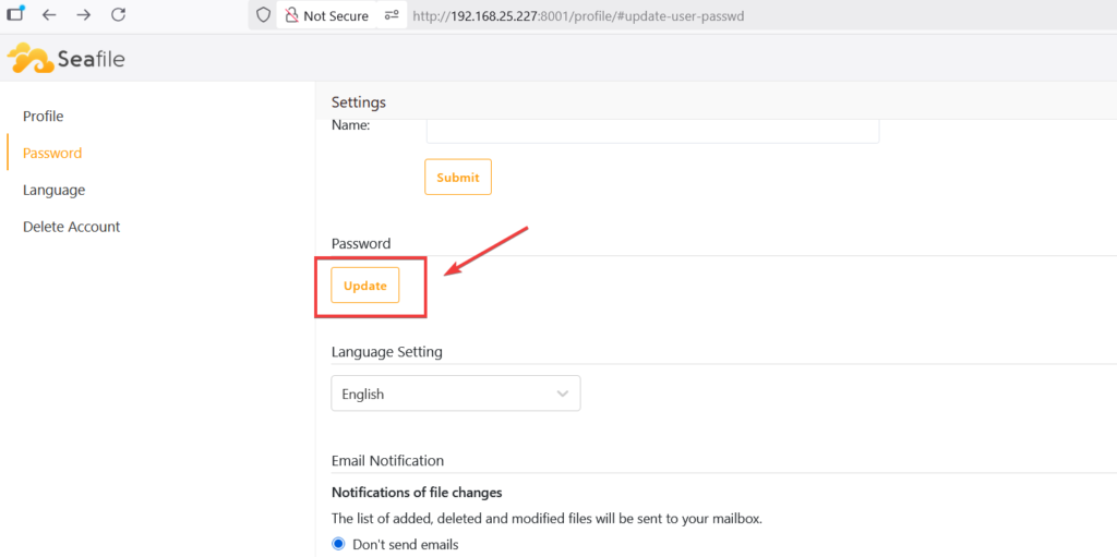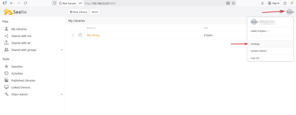 Open your browser and type http://yournasip:8001 to access seafile web interface.