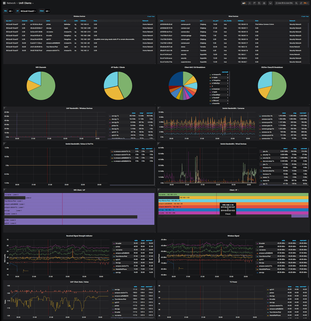 UniFi Poller allows you to collect data from your UniFi network controller, save it to a database, and then display it on pre-supplied attractive and data-rich Grafana dashboards