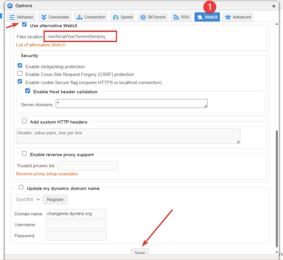 For setup, open qBittorrent settings and oint your alternate WebUI location to the /usr/local/VueTorrent/bin/program folder